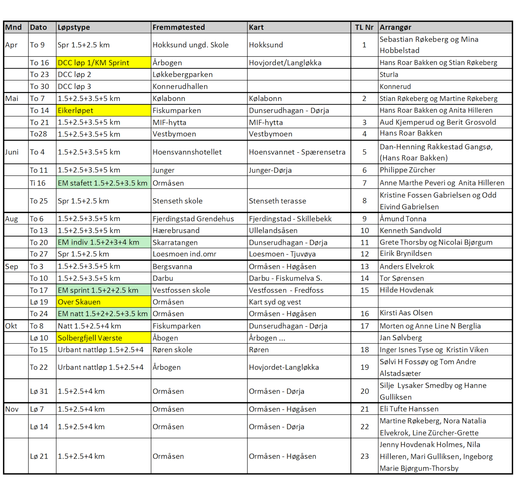 Terminliste treningsløp og klubbløp 2026