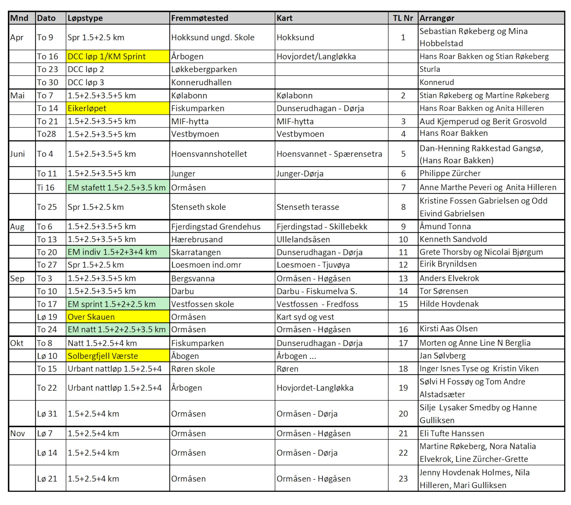 Terminliste treningsløp og klubbløp 2026